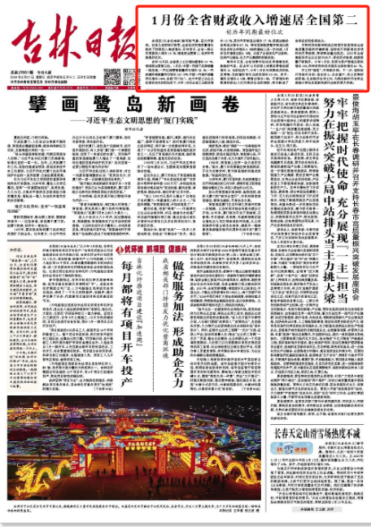 本报讯(记者张雅静)新年新气象,奋力开新局。记者从省财政厅获悉,全省经济的高质量增长推动了财税收入高速增长,开年首月,全省一般公共预算收入增长18.9%,增速居全国第二,创历年同期最好位次。