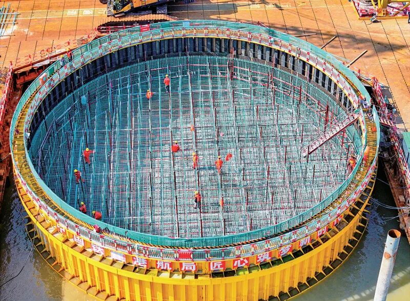 重大基础设施建设是牵引有效投资的“强引擎”。财政部门要优化财政支出结构,加大对重大项目建设投入力度。图为2024年2月14日,浙江宁波舟山港六横公路大桥二期工程双屿门特大桥佛渡岛侧主墩建设现场,工人们正在进行承台钢筋绑扎施工。 人民图片 姚峰/摄